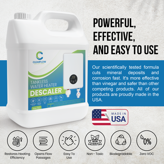 Tankless Water Heater Descaler, Quart (32 oz) - Premium Descaler for Tankless Water Heater Systems, Restores Heating Efficiency, Nontoxic, Easy to Use, Biodegradable, Made in USA!